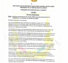 Voici la lettre qui rejette « sagement » la nomination d’un envoyé spécial de la CEDEAO en Guinée