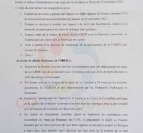 A l’issue d’une réunion, la CORED-GUINÉE dit prendre acte de son exclusion du Quatuor. Sans se prononcer sur sa participation ou non...